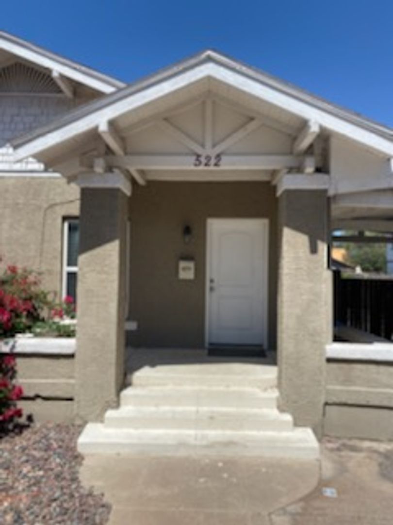 Huge 1-bed Condo in Downtown Phoenix off Hance Park. Almost 900 sf unit on quiet street with only 1 neighbor. Nicely updated unit with Wood LVP throughout, large living, walk in closet, laundry room and assigned covered parking. 2-tone paint throughout, LED fixtures and ceiling fans in bed and living. Kitchen opens to living and lots of windows make the unit feel even bigger. Nicely landscaped backyard you share with 1 neighbor, huge storage unit is also included in the rent.