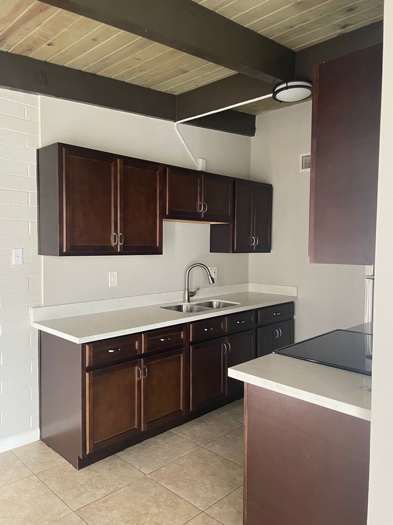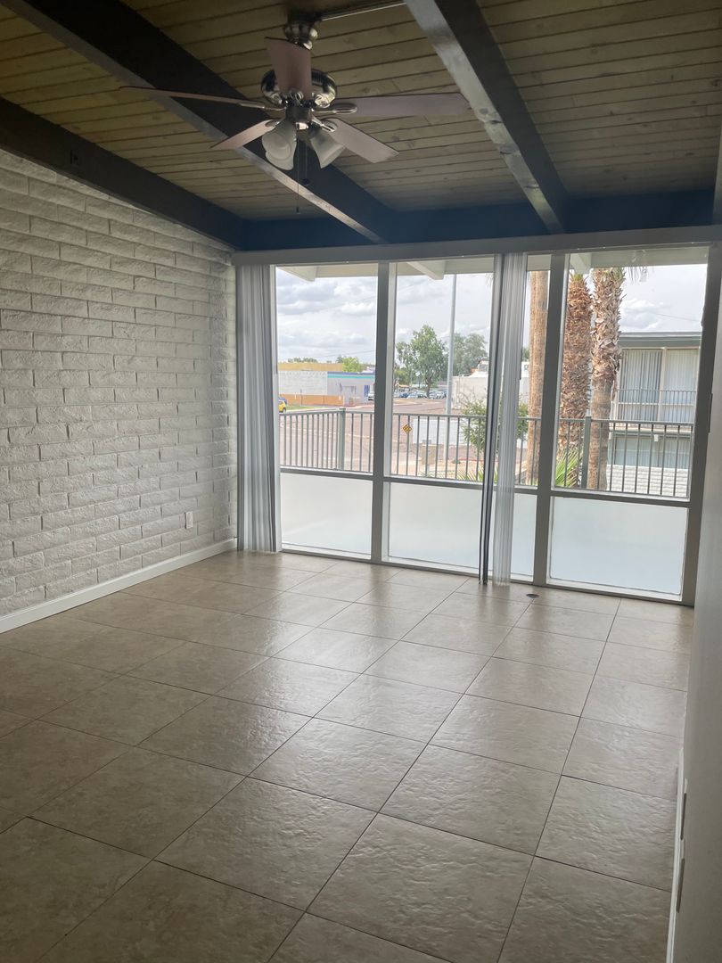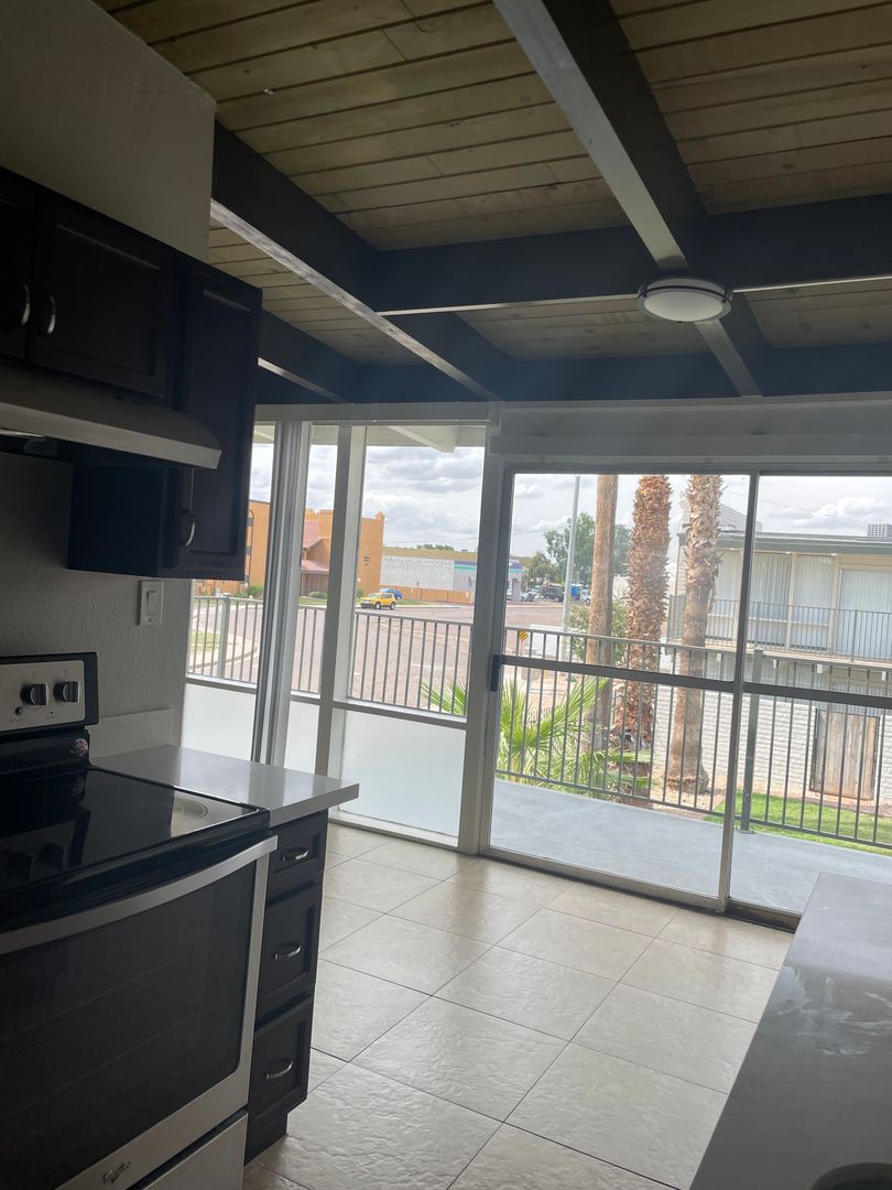 1-bed condo with vaulted ceilings in Central Phoenix. Quartz counters and stainless steel appliances in the kitchen. Ceiling fan in both living and bedroom. Walk-in closet in bedroom. Laundry room with additional storage. Dining area of the kitchen and spacious balcony too.