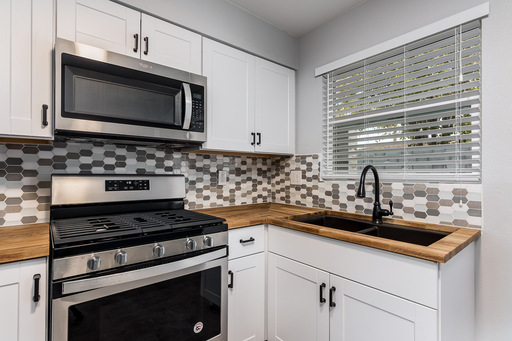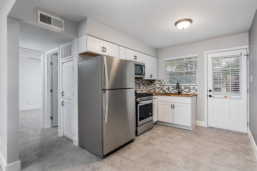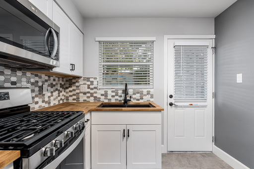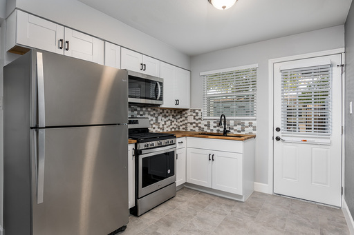 2 bedroom unit with a private backyard in Arcadia. Nicely updated with shaker cabinets and stainless steel appliances in kitchen including a gas range. Tile flooring throughout, fresh paint and upgraded fixtures. Windows all replaced in 2020, AC replaced in 2022. Fenced backyard has a nice patio made of pavers for table, chairs. Comes with assigned covered parking. Community laundry on-site shared with only 2 other units.